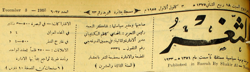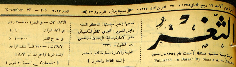 صاحبها ورئيس تحريرها : شاكر النعمة.