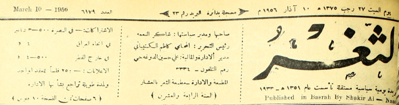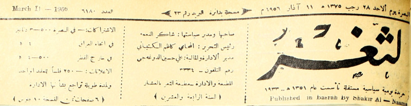 صاحبها ورئيس تحريرها : شاكر النعمة.