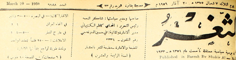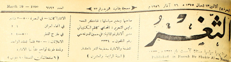 صاحبها ورئيس تحريرها : شاكر النعمة.
