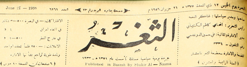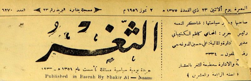 جريدة يومية سياسية عامة = AL-Thaghr : A Daily Newspaper