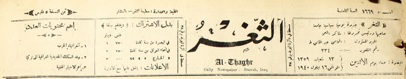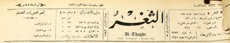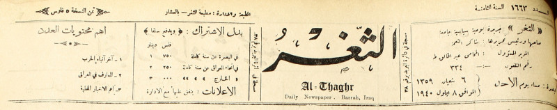 جريدة يومية سياسية عامة = AL-Thaghr : A Daily Newspaper