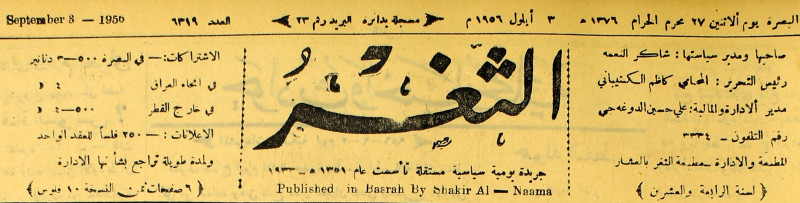 صاحبها ورئيس تحريرها : شاكر النعمة.