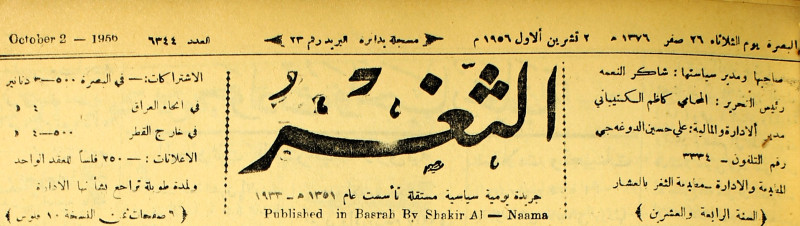 صاحبها ورئيس تحريرها : شاكر النعمة.