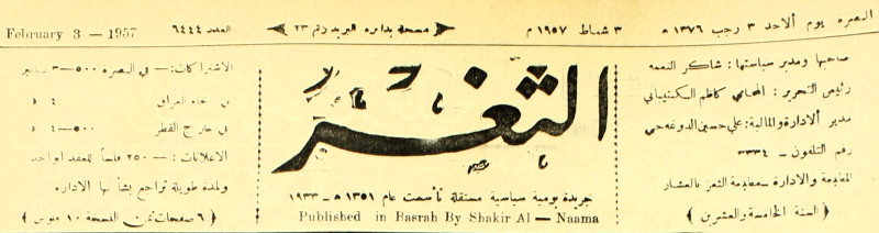 صاحبها ورئيس تحريرها : شاكر النعمة.