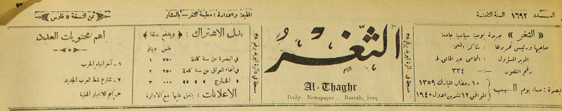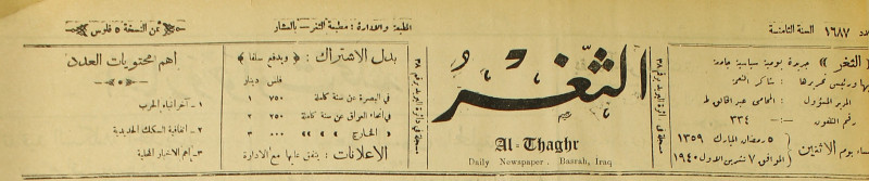 جريدة يومية سياسية عامة = AL-Thaghr : A Daily Newspaper