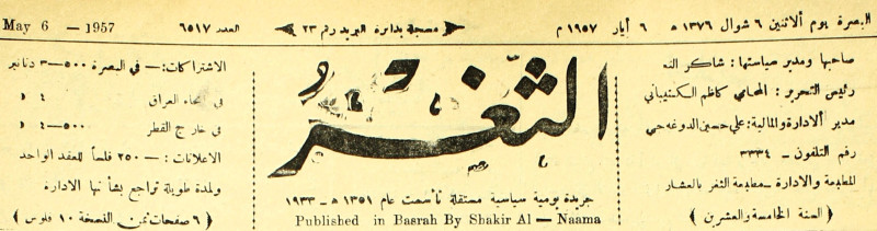 صاحبها ورئيس تحريرها : شاكر النعمة.