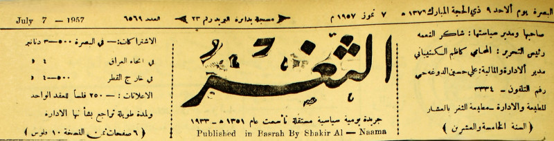 صاحبها ورئيس تحريرها : شاكر النعمة.