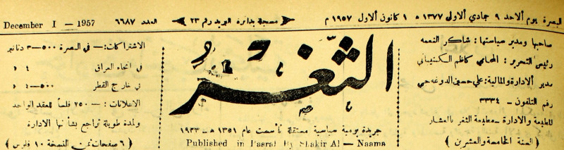 جريدة يومية سياسية عامة = AL-Thaghr : A Daily Newspaper