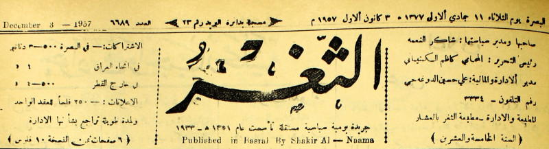 صاحبها ورئيس تحريرها : شاكر النعمة.