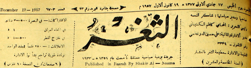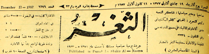 صاحبها ورئيس تحريرها : شاكر النعمة.