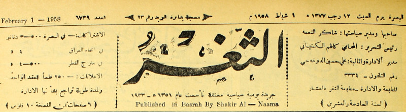 جريدة يومية سياسية عامة = AL-Thaghr : A Daily Newspaper