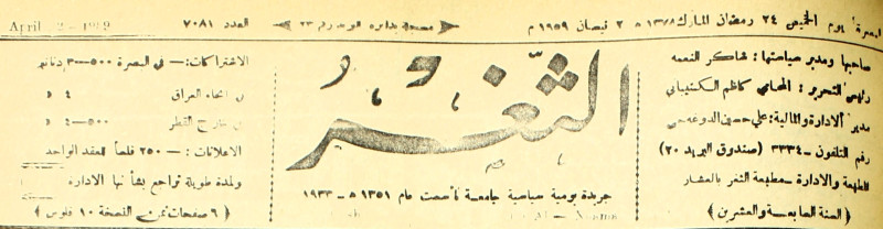صاحبها ورئيس تحريرها : شاكر النعمة.