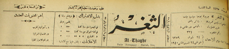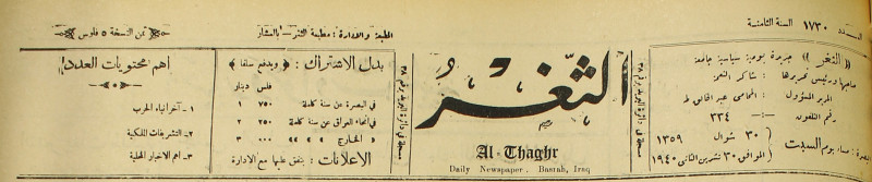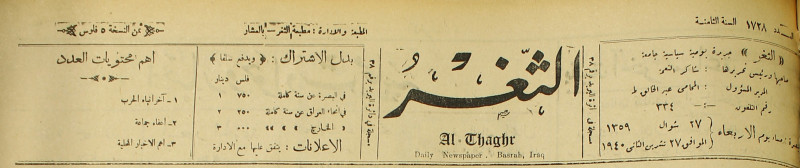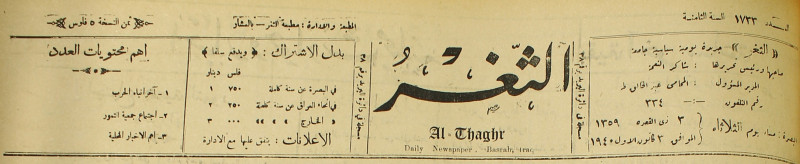 جريدة يومية سياسية عامة = AL-Thaghr : A Daily Newspaper