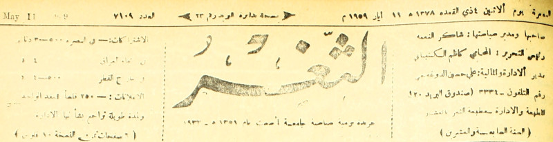 صاحبها ورئيس تحريرها : شاكر النعمة.