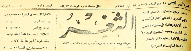 جريدة يومية سياسية عامة = AL-Thaghr : A Daily Newspaper