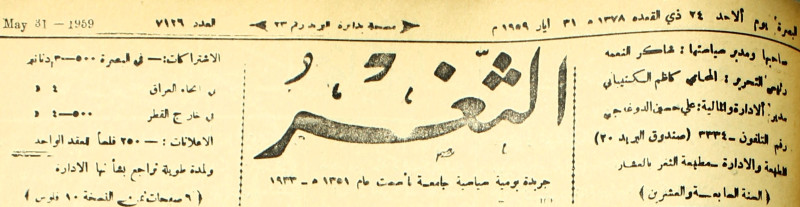 جريدة يومية سياسية عامة = AL-Thaghr : A Daily Newspaper