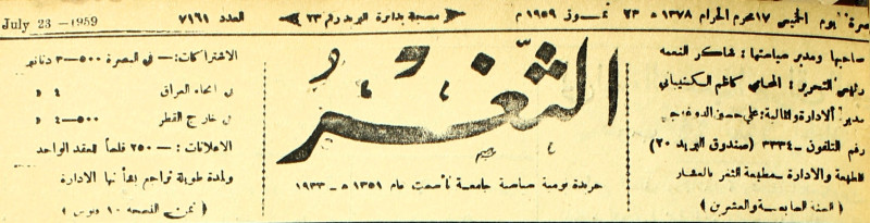 جريدة يومية سياسية عامة = AL-Thaghr : A Daily Newspaper