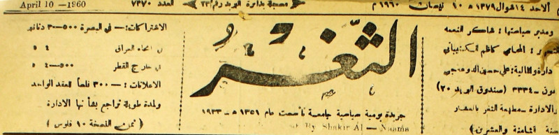 صاحبها ورئيس تحريرها : شاكر النعمة.