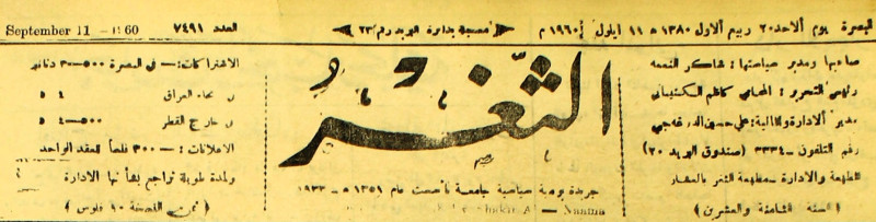 جريدة يومية سياسية عامة = AL-Thaghr : A Daily Newspaper