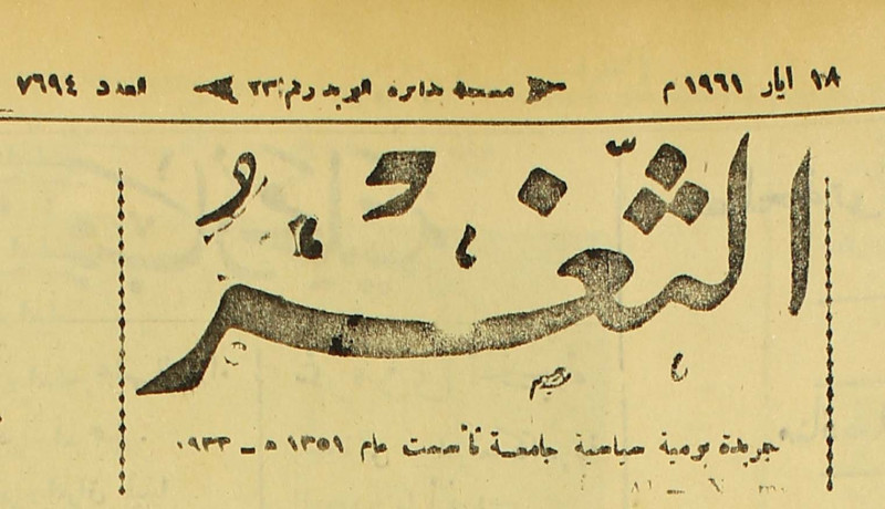 جريدة يومية سياسية عامة = AL-Thaghr : A Daily Newspaper
