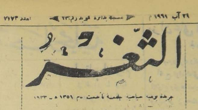 جريدة يومية سياسية عامة = AL-Thaghr : A Daily Newspaper