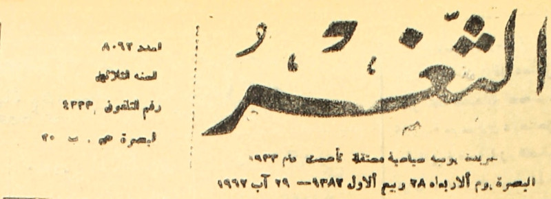 جريدة يومية سياسية عامة = AL-Thaghr : A Daily Newspaper
