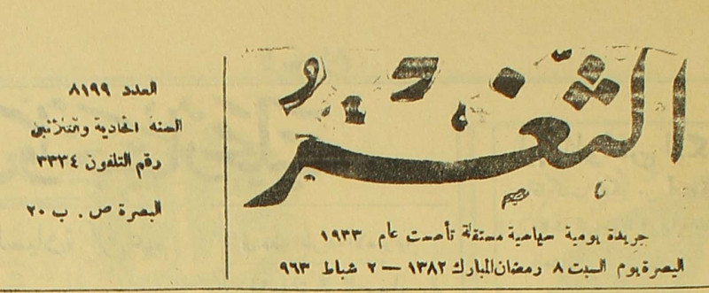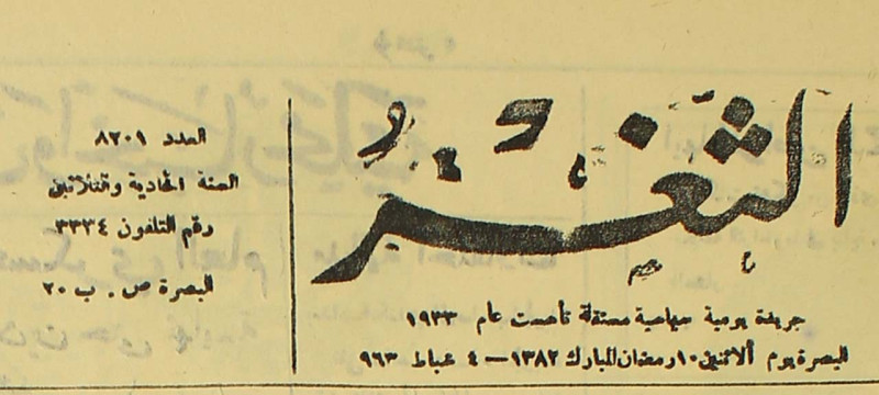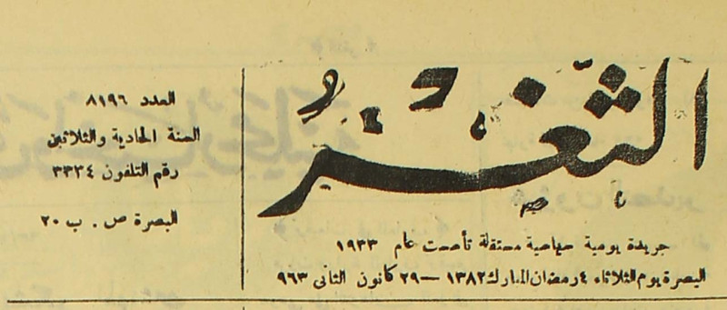 جريدة يومية سياسية عامة = AL-Thaghr : A Daily Newspaper