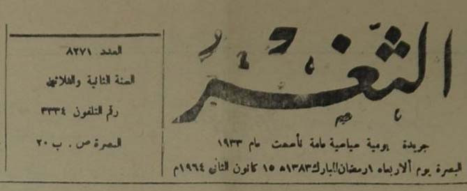 جريدة يومية سياسية عامة = AL-Thaghr : A Daily Newspaper