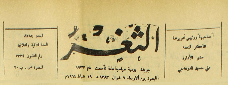 جريدة يومية سياسية عامة = AL-Thaghr : A Daily Newspaper