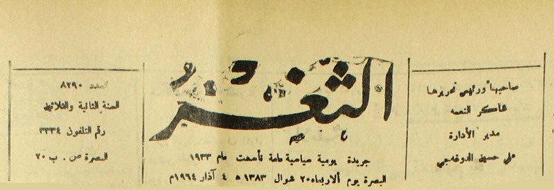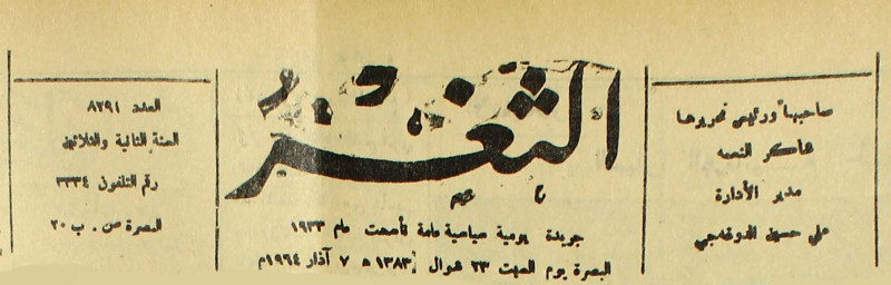 جريدة يومية سياسية عامة = AL-Thaghr : A Daily Newspaper