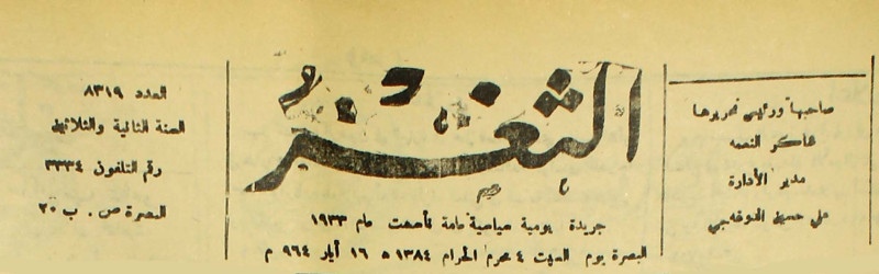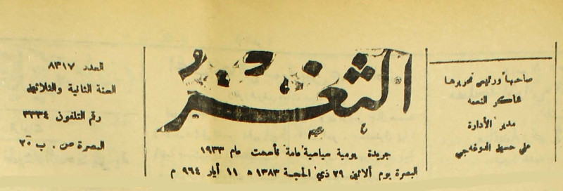 جريدة يومية سياسية عامة = AL-Thaghr : A Daily Newspaper
