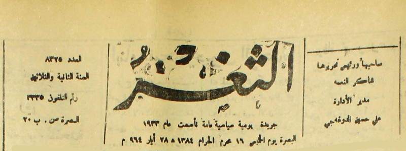 جريدة يومية سياسية عامة = AL-Thaghr : A Daily Newspaper