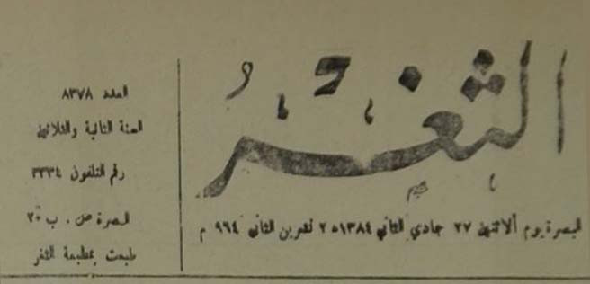 جريدة يومية سياسية عامة = AL-Thaghr : A Daily Newspaper