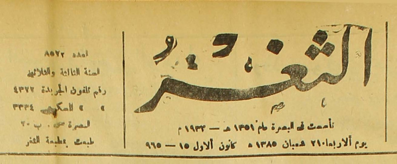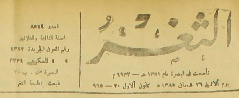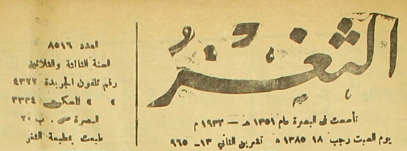 جريدة يومية سياسية عامة = AL-Thaghr : A Daily Newspaper