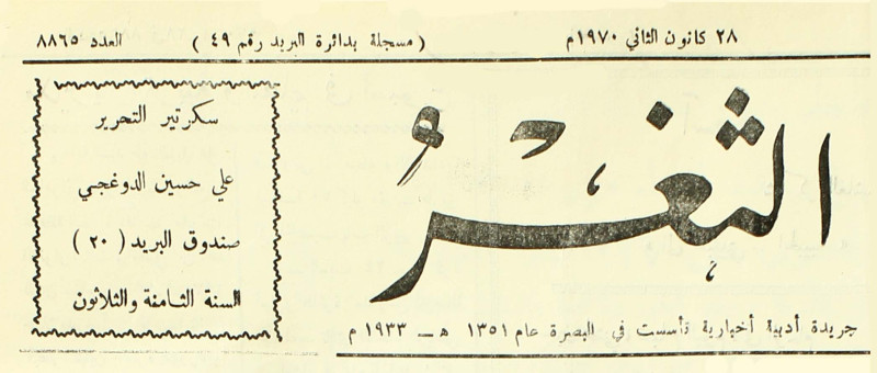 جريدة يومية سياسية عامة = AL-Thaghr : A Daily Newspaper