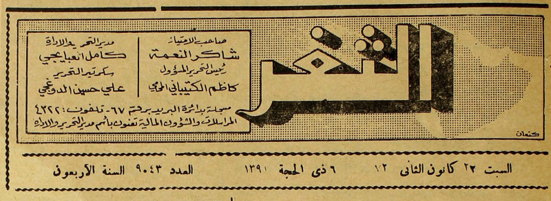 صاحبها ورئيس تحريرها : شاكر النعمة.