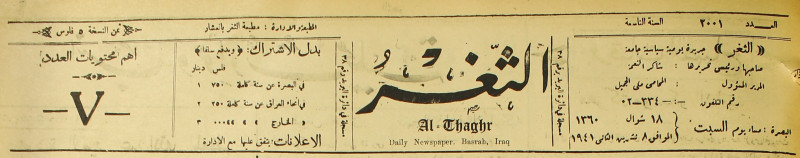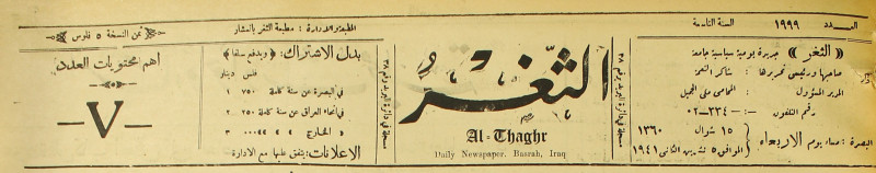جريدة يومية سياسية عامة = AL-Thaghr : A Daily Newspaper