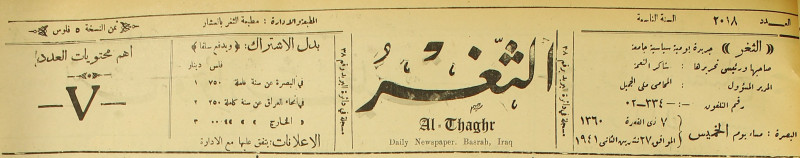 جريدة يومية سياسية عامة = AL-Thaghr : A Daily Newspaper