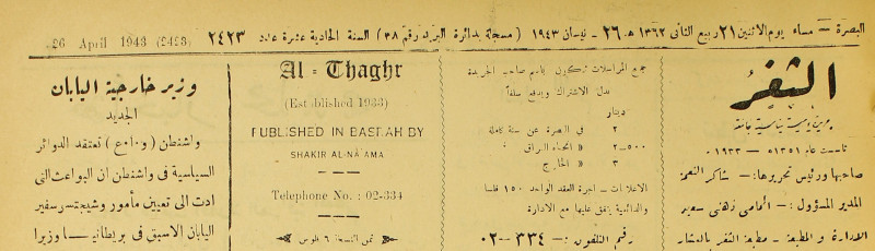 جريدة يومية سياسية عامة = AL-Thaghr : A Daily Newspaper