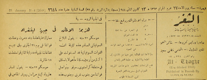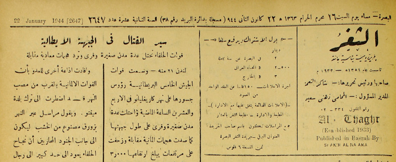 جريدة يومية سياسية عامة = AL-Thaghr : A Daily Newspaper