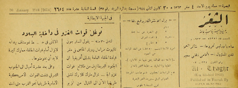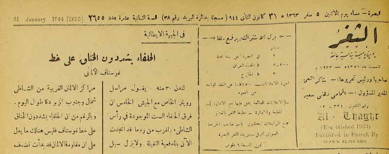 جريدة يومية سياسية عامة = AL-Thaghr : A Daily Newspaper