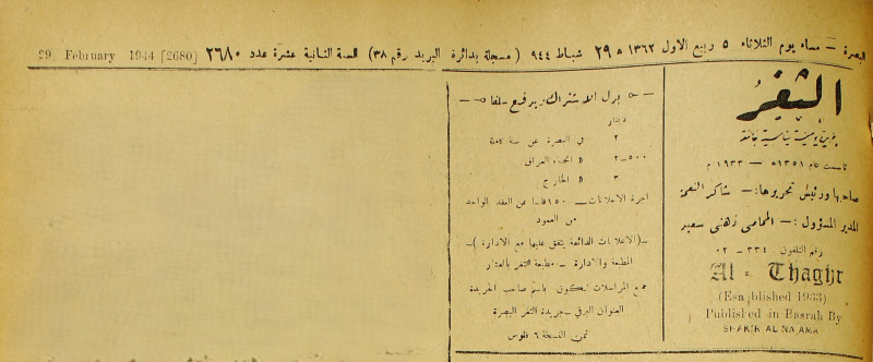 جريدة يومية سياسية عامة = AL-Thaghr : A Daily Newspaper