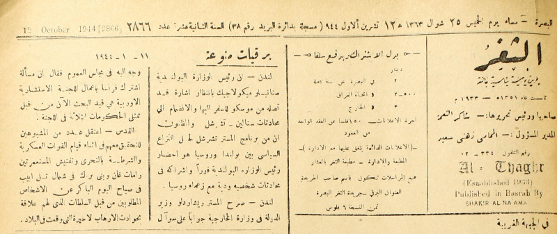 جريدة يومية سياسية عامة = AL-Thaghr : A Daily Newspaper