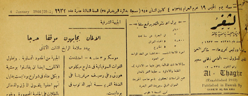 جريدة يومية سياسية عامة = AL-Thaghr : A Daily Newspaper