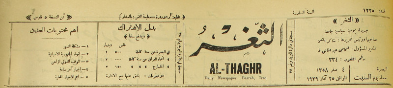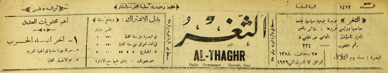 جريدة يومية سياسية عامة = AL-Thaghr : A Daily Newspaper