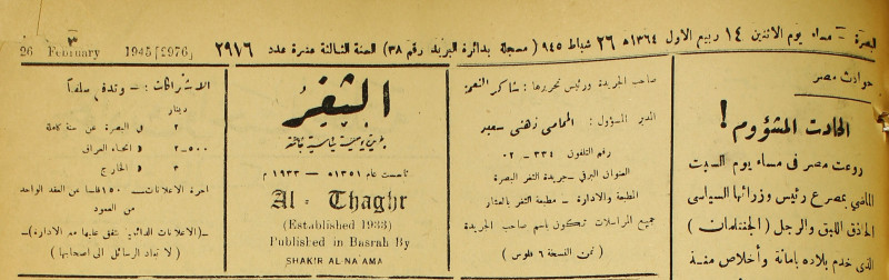 جريدة يومية سياسية عامة = AL-Thaghr : A Daily Newspaper