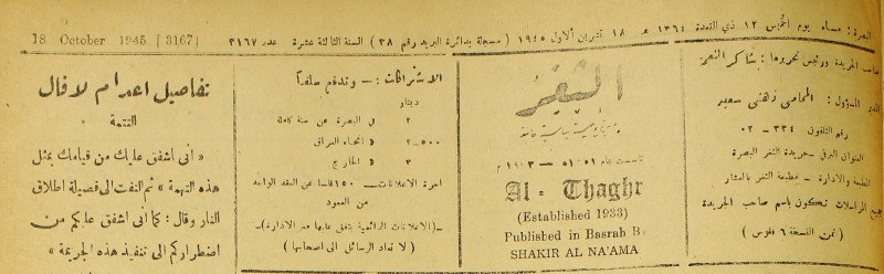 صاحبها ورئيس تحريرها : شاكر النعمة.