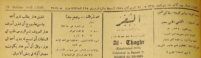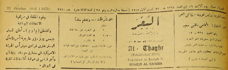 جريدة يومية سياسية عامة = AL-Thaghr : A Daily Newspaper