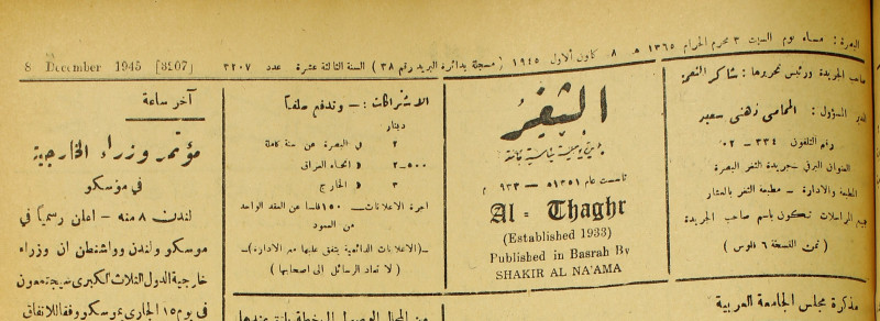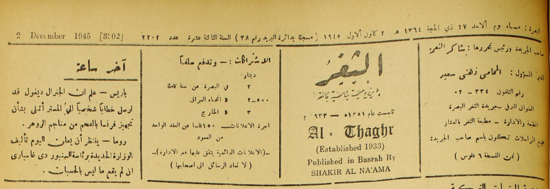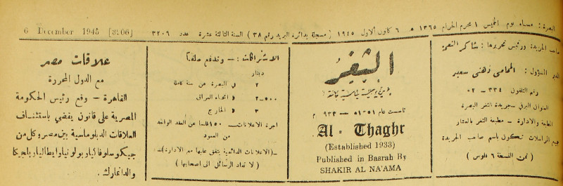 جريدة يومية سياسية عامة = AL-Thaghr : A Daily Newspaper