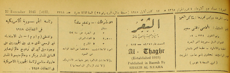صاحبها ورئيس تحريرها : شاكر النعمة.